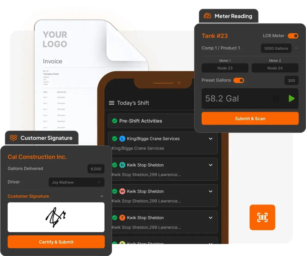An iOS/Android app that gives them delivery instructions, turn-by-turn navigation, integrates with LCR meters, printers, captures BOL, signature and has offline mode makes drivers’ life a lot easier.